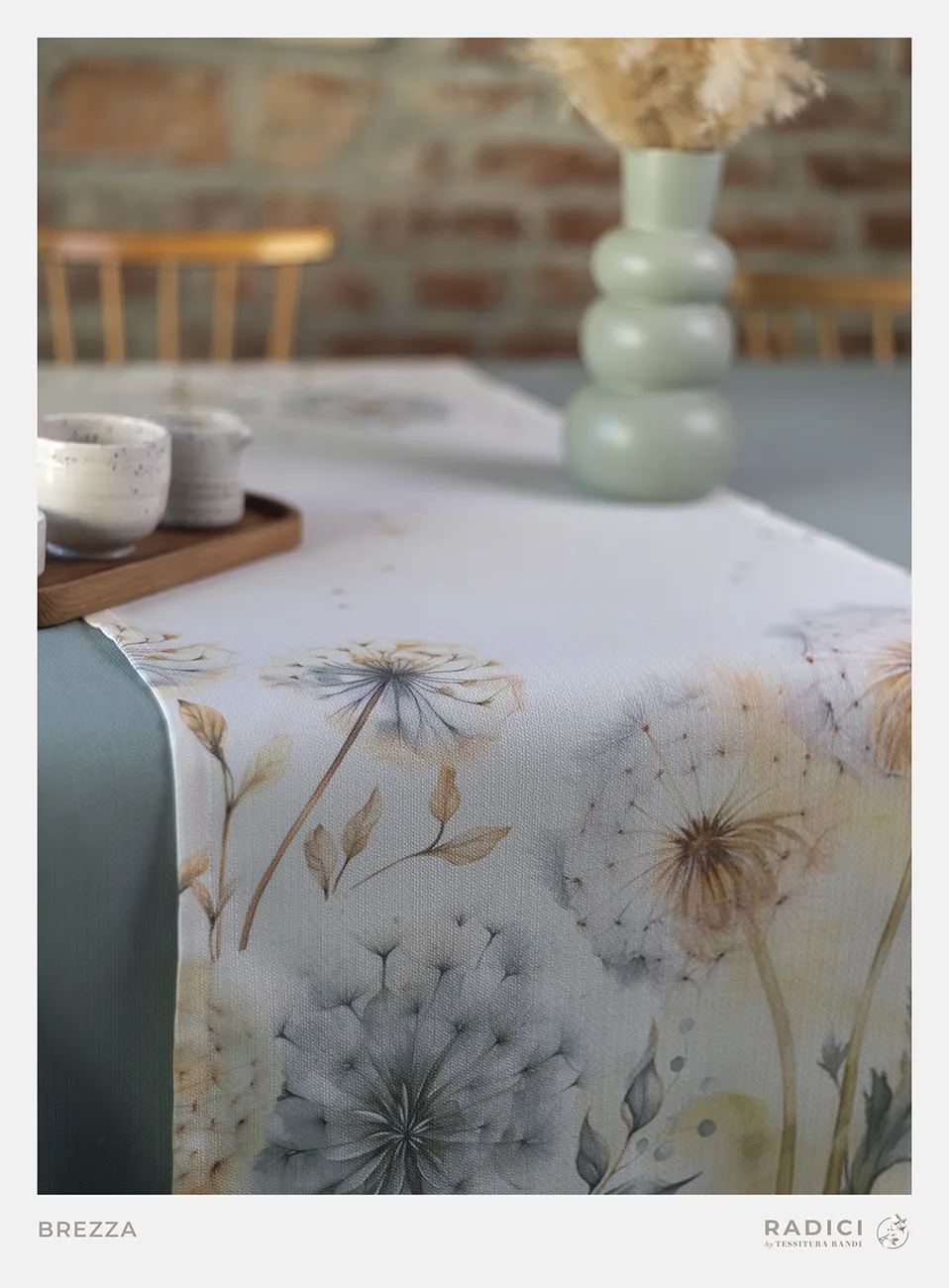 Brezza Runner Antimacchia e no stiro, ideale per l’uso quotidiano e adatto a tutti gli ambienti, realizzato con tessuto canvas fiammato RICICLATO caratterizzato da un’ottima resistenza nel tempo e da una facile manutenzione.