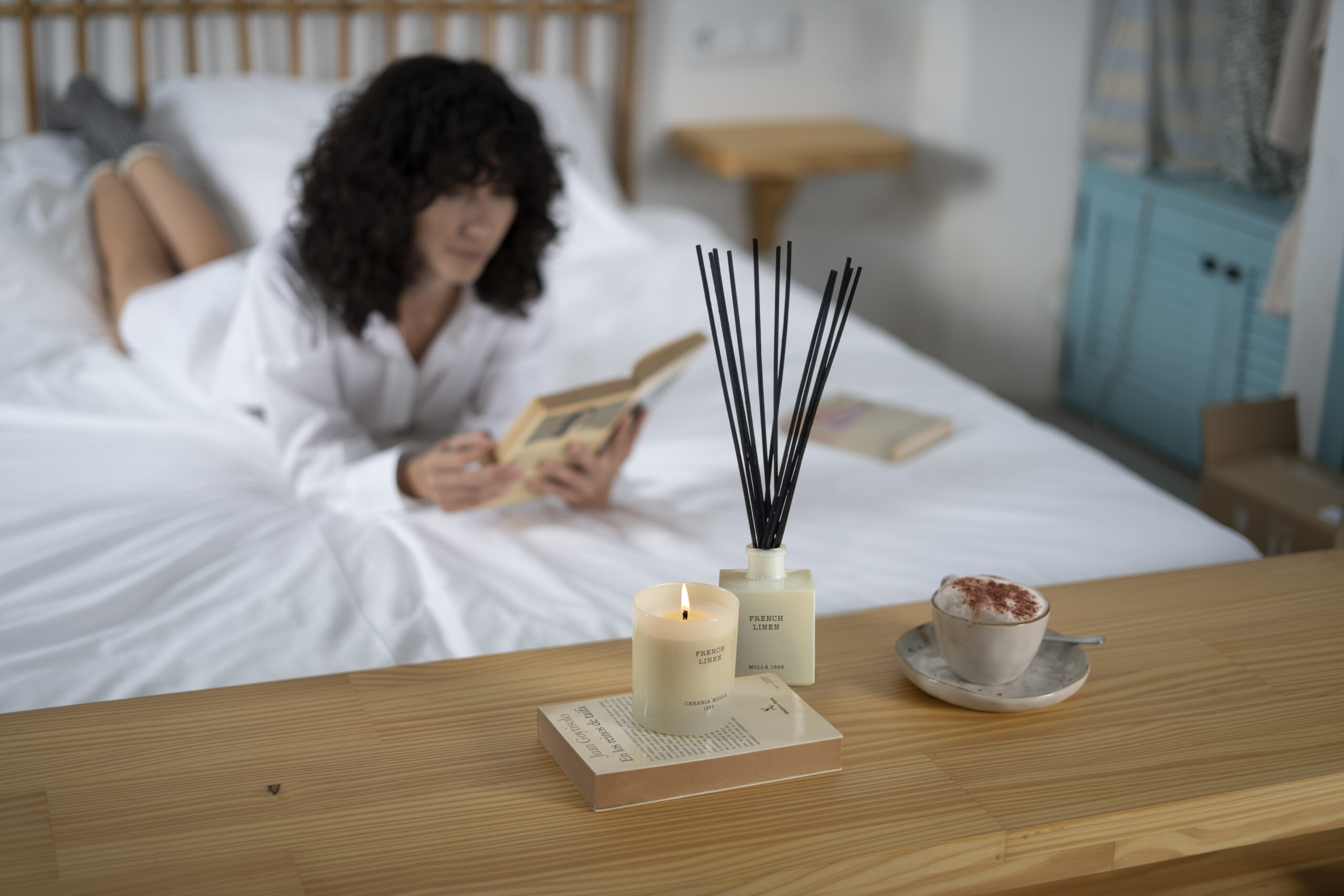 Candela CERERIA MOLLÁ French Linen 230gr, una fragranza che riempie l’aria di gigli, peonie e fresie appena recisi, evocando la freschezza degli agrumi e una nostalgica sensazione d’infanzia.