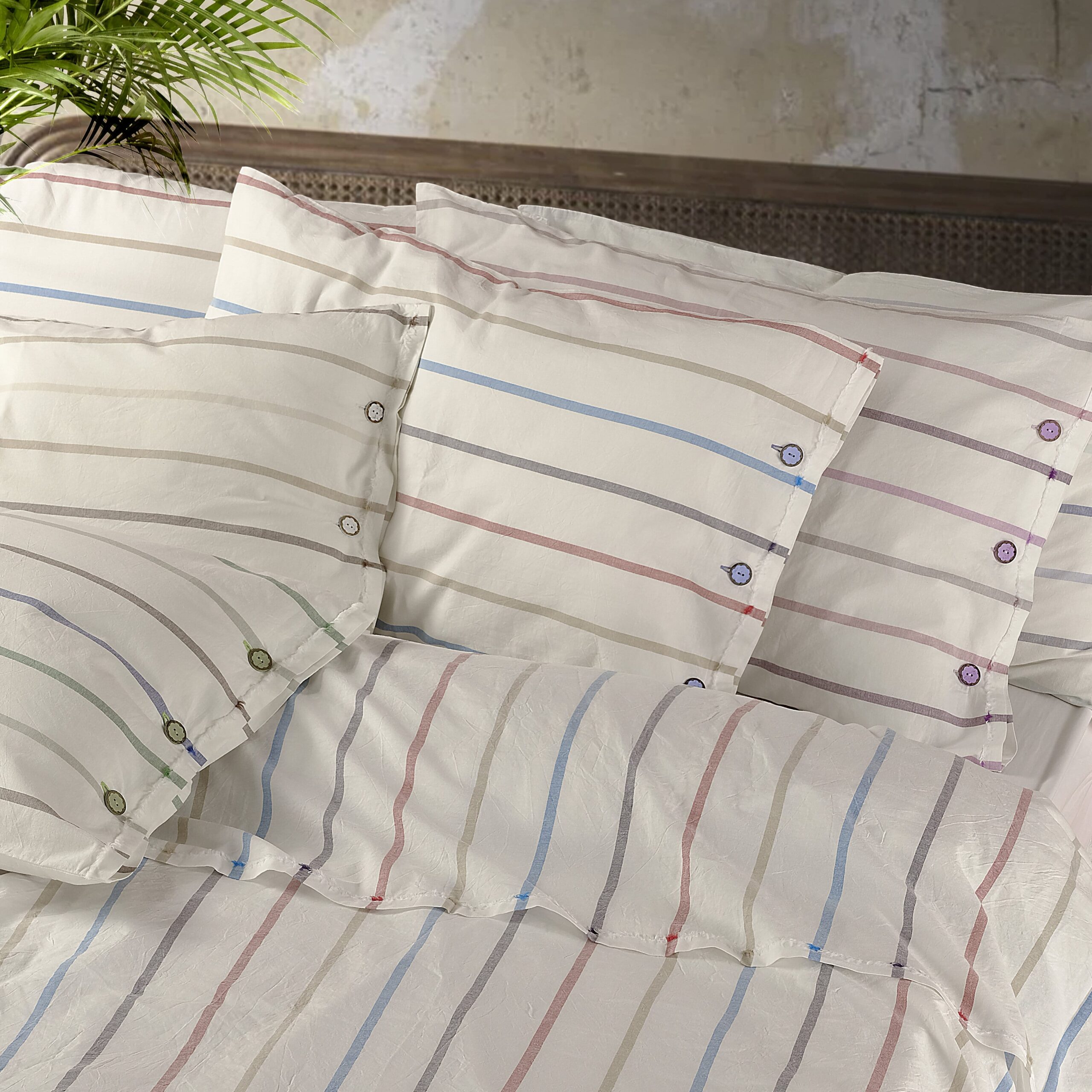 Nava Completo Letto Matrimoniale GOVINA in 100% Cotone TINTO IN FILO – NO STIRO – trattato con lavaggi particolari che donano al prodotto un effetto vissuto e ne permettono l’utilizzo senza che venga stirato.