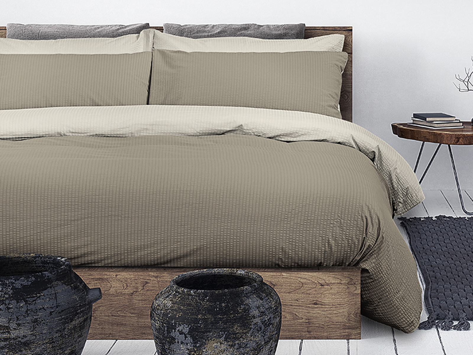 Parure Copripiumino Seersucker DAUNEX – NO STIRO effetto stropicciato.